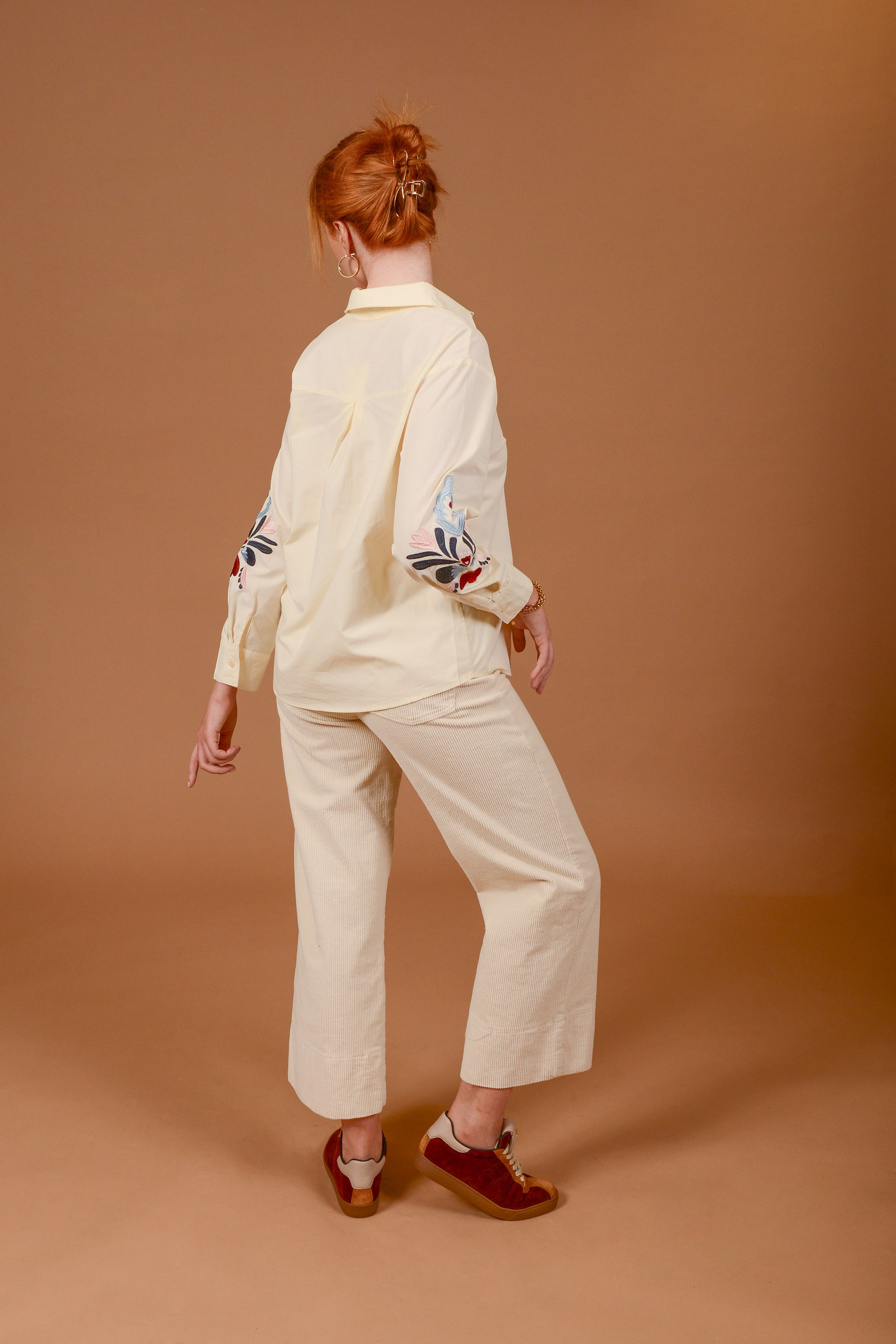 Embroidered Sleeve Cotton Shirt – Cream - Charli