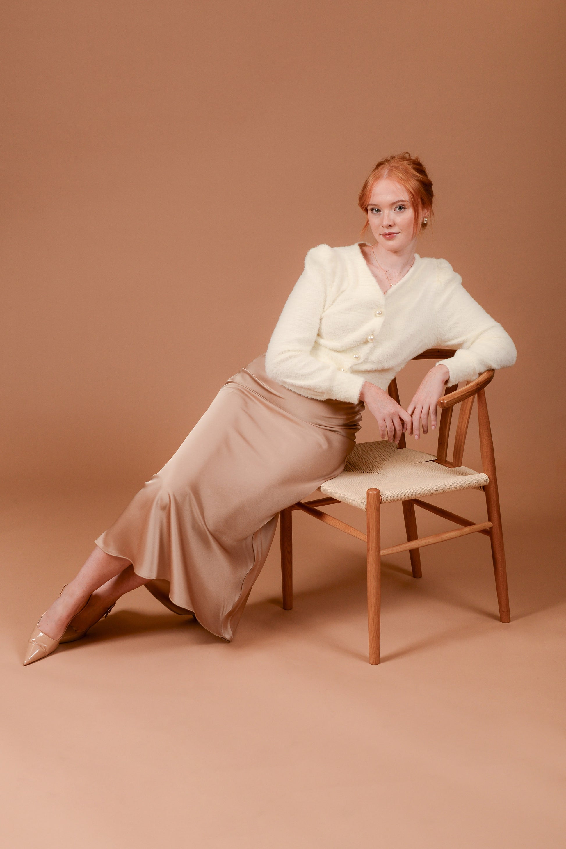 The Eden Skirt is the definition of effortless elegance. Designed in a fluid satin fabric, it skims the figure beautifully with a soft drape and a subtle sheen. The bias-cut silhouette flatters every shape, making it a timeless piece you’ll return to season after season. In a versatile champagne tone, the Eden Skirt transitions seamlessly from day to night.
