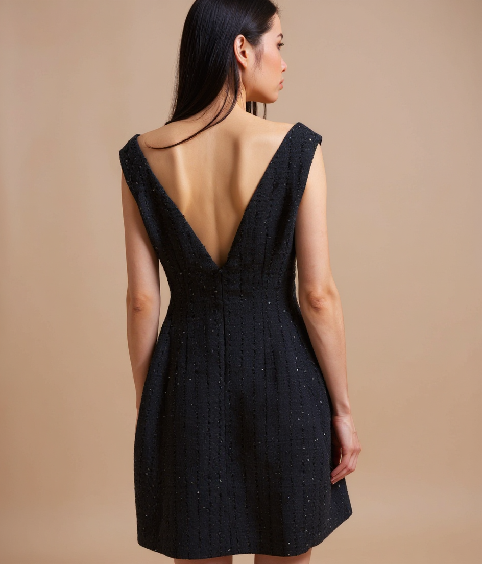 Emma Dress – Sophisticated, Sleeveless Midi in Luxe Tweed