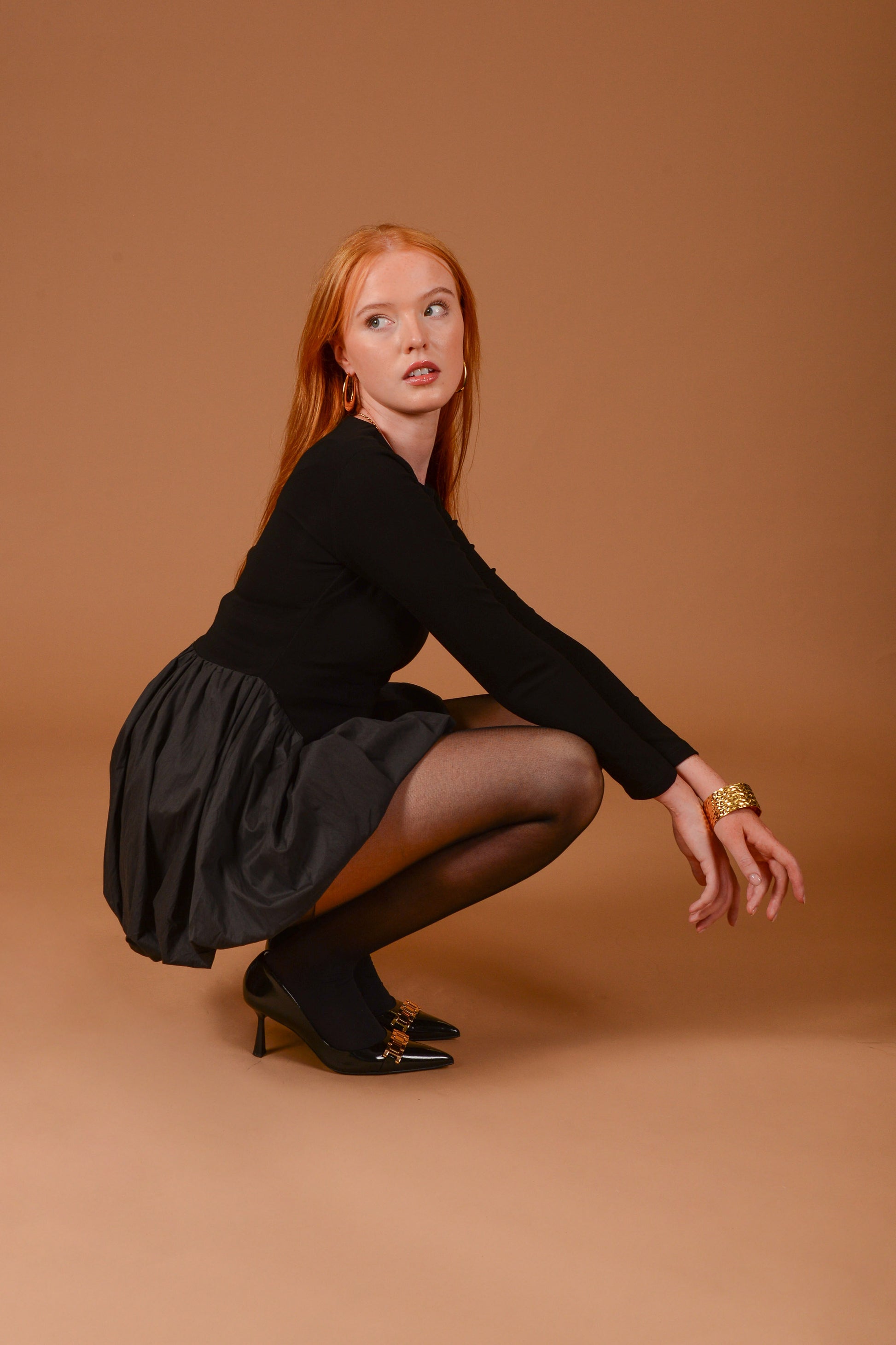 The Enya Dress is a modern statement piece that plays with texture and silhouette. Designed with a sleek fitted bodice and long sleeves, it flows into a voluminous gathered skirt that creates a striking contrast. The mix of structured and fluid fabrics makes this dress both contemporary and flattering, perfect for an elevated day look or evening styling. Crafted in a comfortable stretch blend with a cotton feel against the skin, the Enya Dress balances style with wearability.