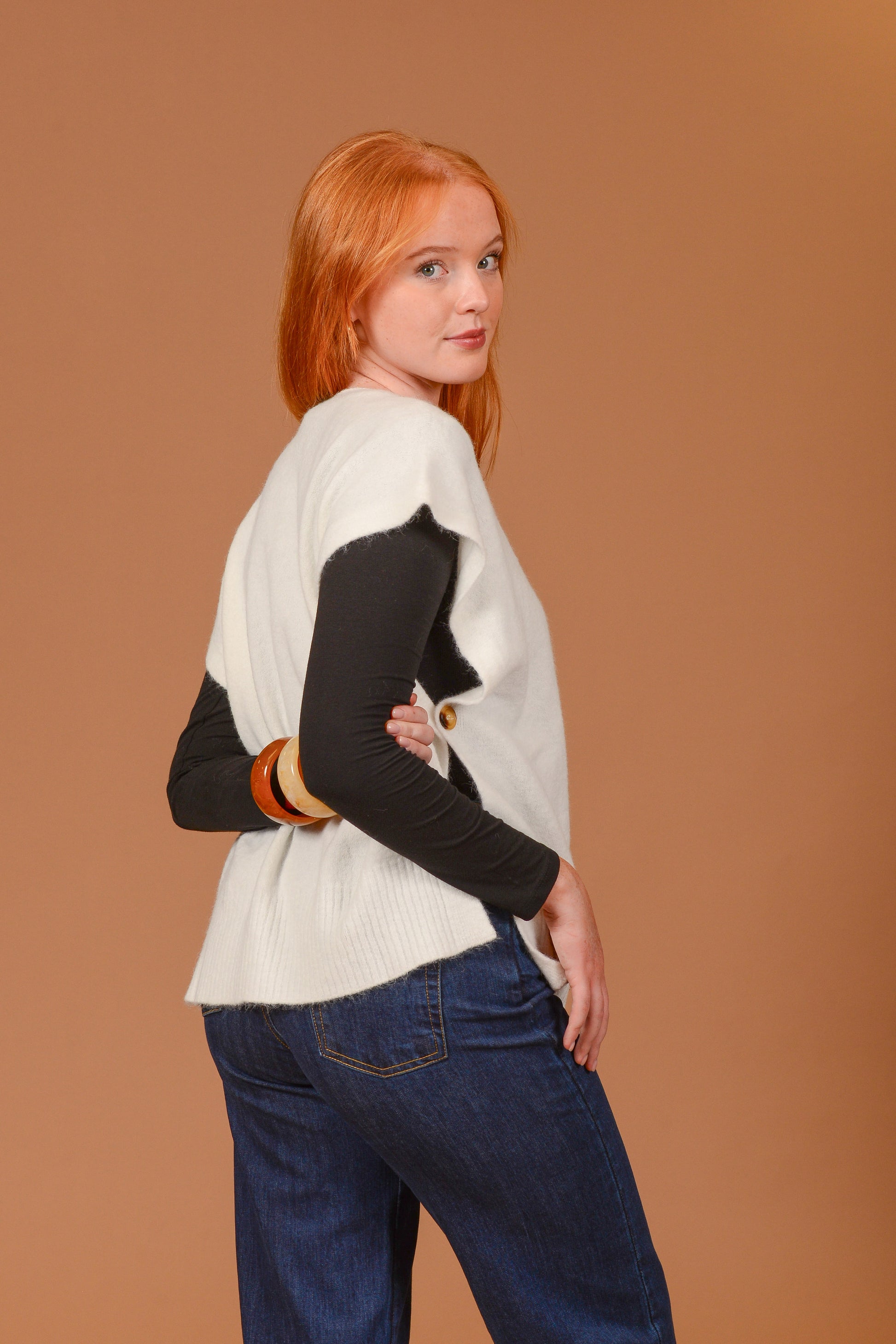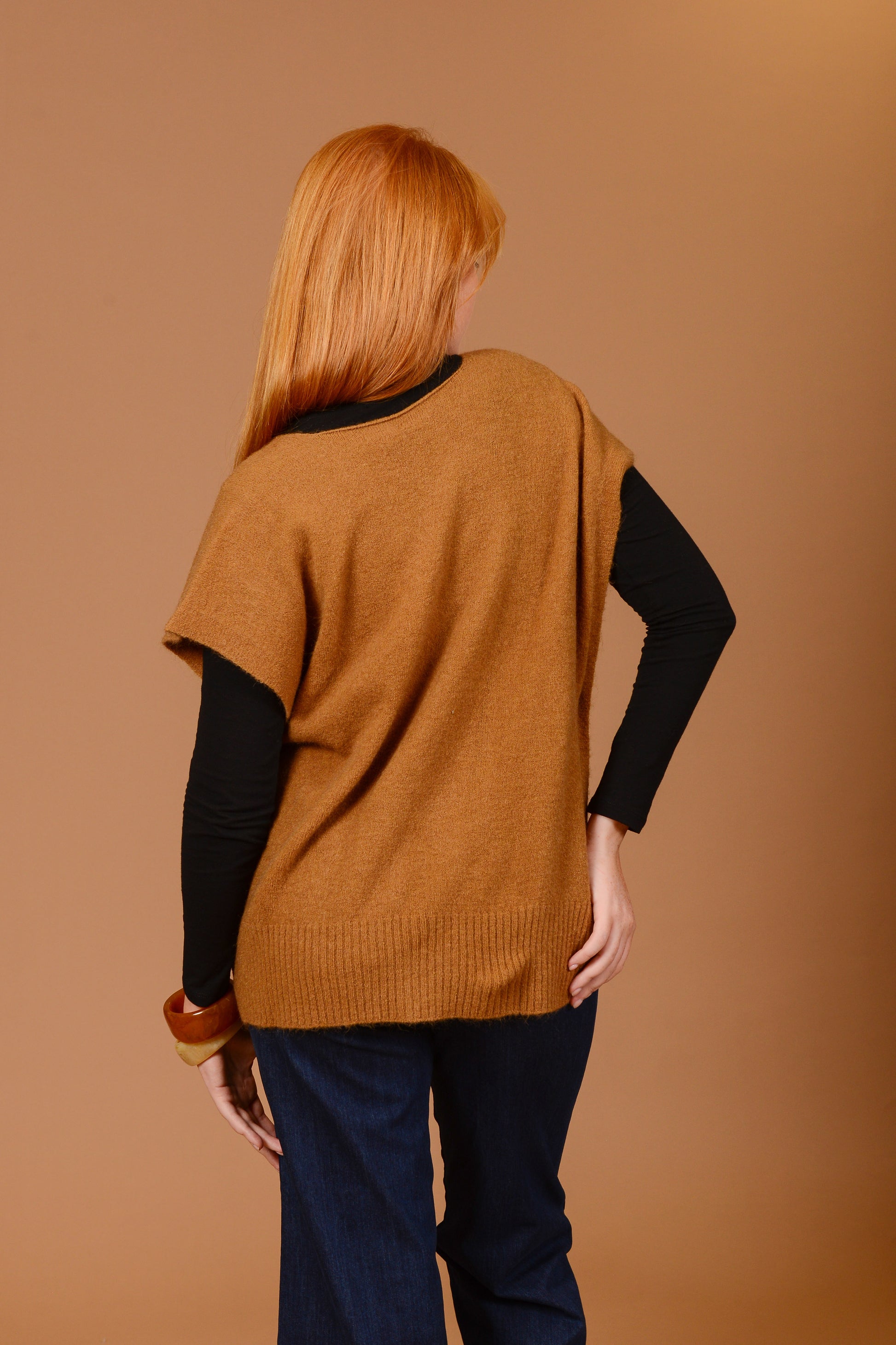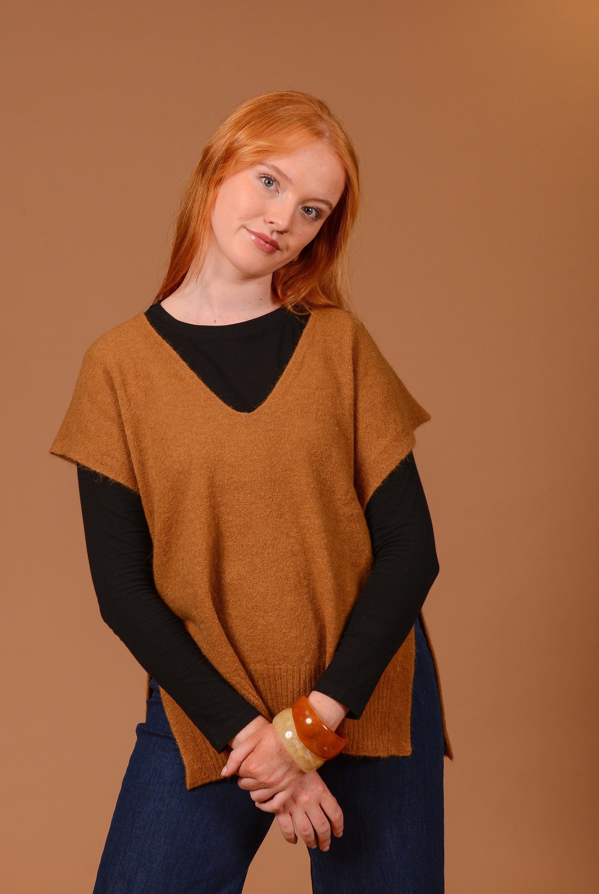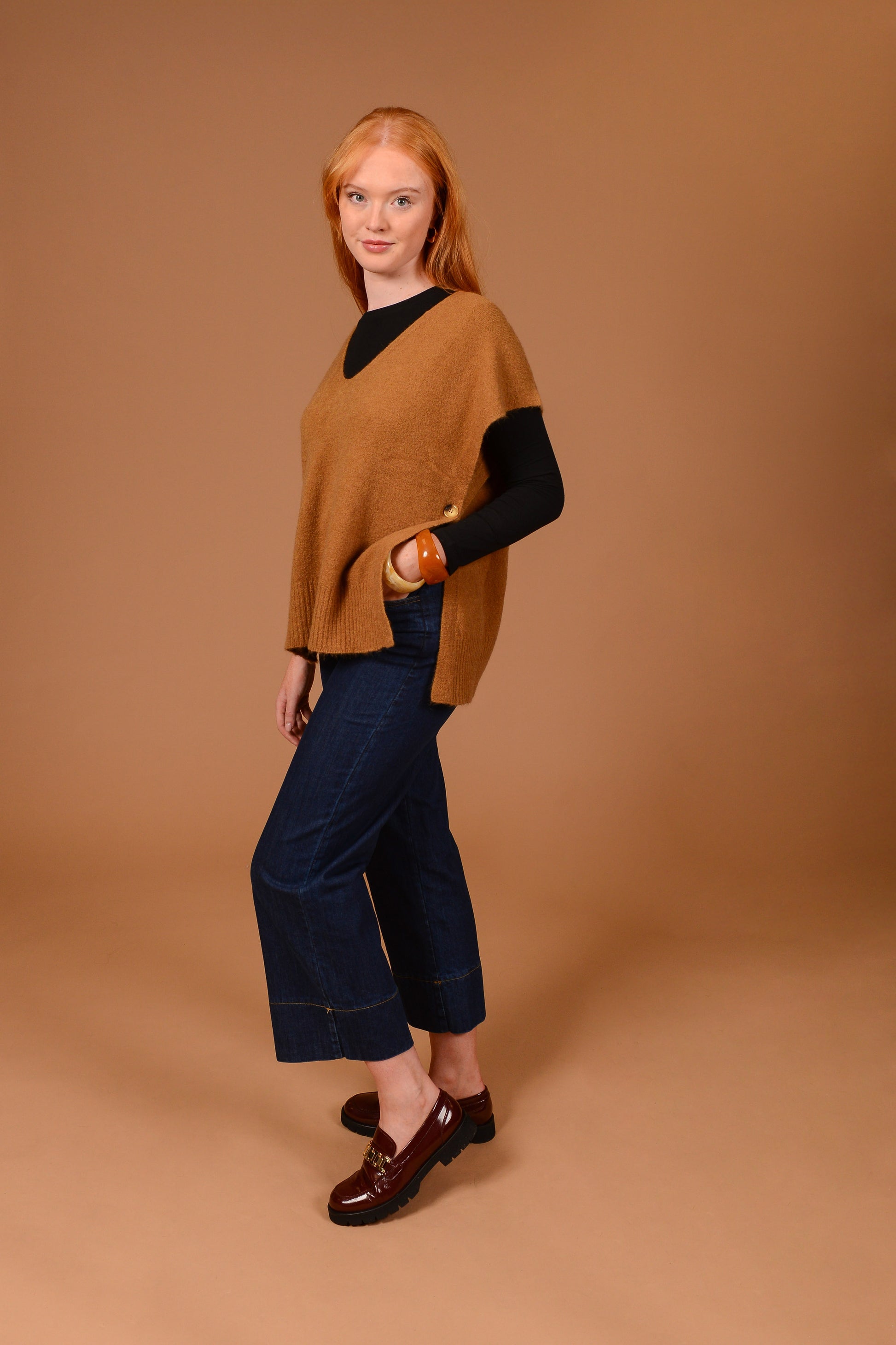 A timeless wardrobe staple, this soft knit top is crafted in a feather-light blend for a luxuriously cosy yet breathable feel. Designed with a flattering V-neckline and no sleeves, it drapes beautifully over the body for an effortless silhouette. This vest closes on either side with a button detail that adds a modern touch, making it perfect for layering or styling solo. Pair with tailored trousers for chic workwear or dress down with denim for an elevated casual look.